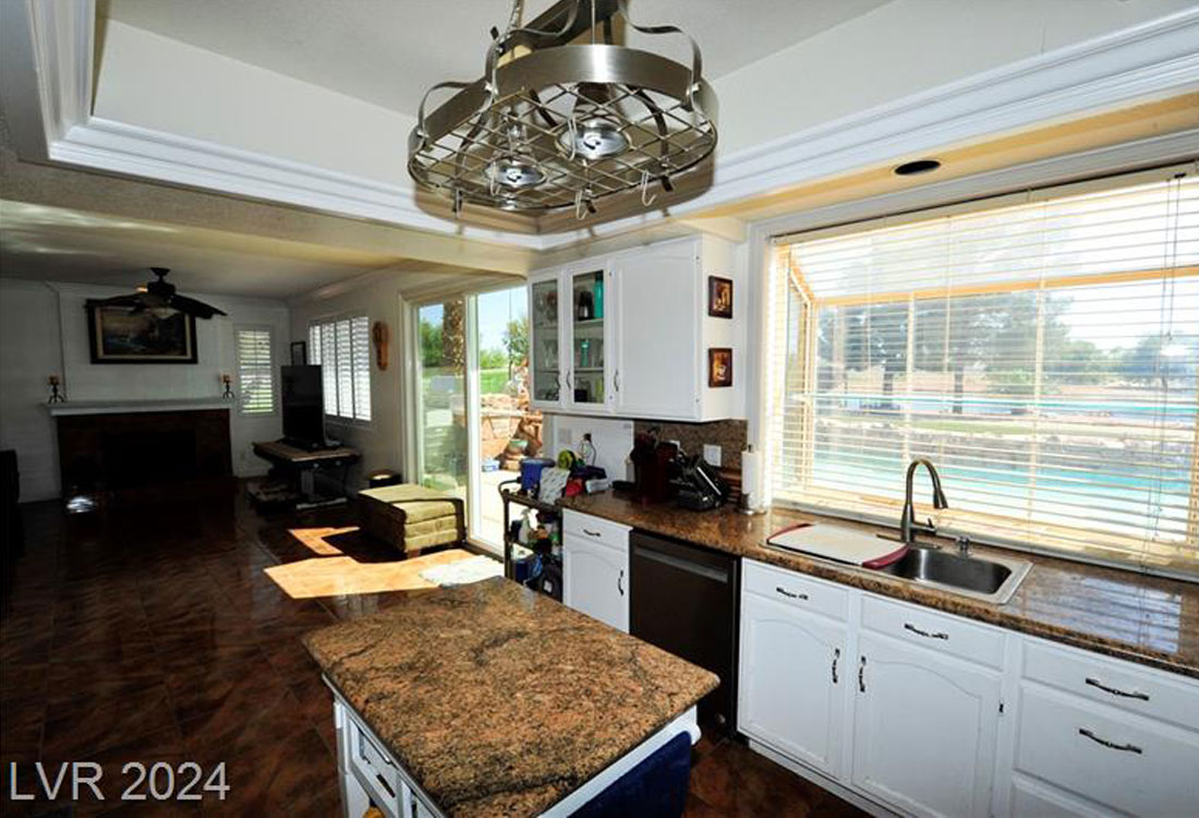One of the premier lots in Painted Desert, set on nearly half an acre with lake frontage and sweeping golf course views. This home was completely reimagined with a full interior renovation, including relocating and doubling the size of the kitchen to create a true centerpiece for the home. New white shaker cabinetry with soft-close hardware, quartz countertops, all-new flooring, and an expanded 8-ft window enhance both function and natural light. The primary bath was redesigned with a large wall-to-wall shower, fireplaces were wrapped in porcelain tile, and the interior and exterior were freshly painted. A tankless water heater and new appliances complete the upgrade. The resort-style backyard features a pool with waterfall and spa, built-in BBQ, and unmatched lake and golf course views—crafted for elevated indoor-outdoor living.